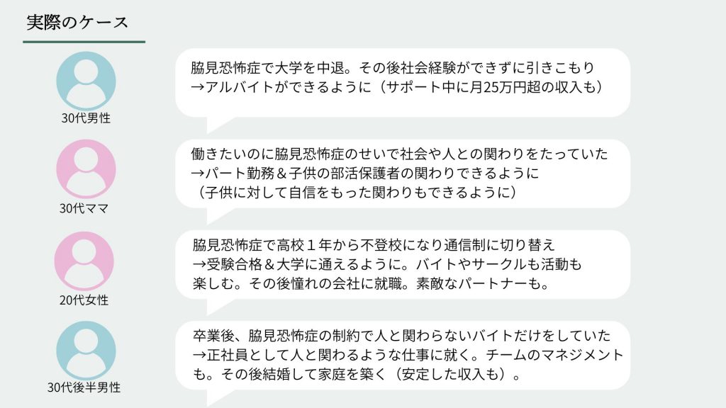 人との関わりを避け続けていた方が、家庭や職場で人と関われるようになったり。