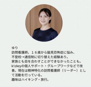 脇見恐怖症を克服した経験を持つ訪問看護師さんと連携したサポートも、人数限定で始めています。担当してくれているのが、こちらの方です。